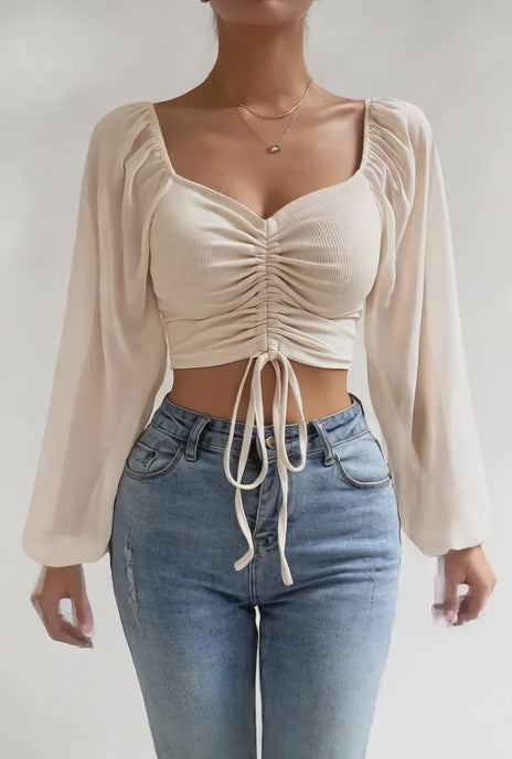 Mejora tu guardarropa informal con esta versátil blusa con cuello en V que presenta una favorecedora cintura con cordón ajustable y un corte corto. Las mangas largas brindan cobertura, mientras que el ajuste relajado te mantiene cómoda todo el día. Perfecta para usar en capas o sola, esta prenda pasa sin problemas de las salidas de fin de semana a los entornos de oficina informales. Disponible en varias tallas para un ajuste ideal.