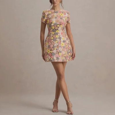 Sequin Patchwork O-Neck Mini Dress